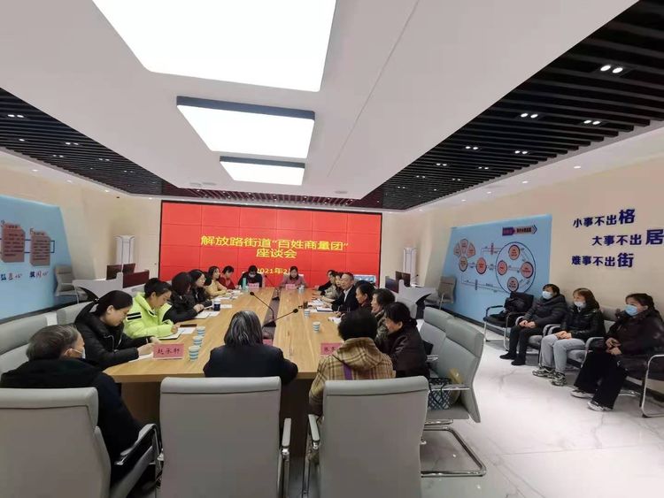 为推动“商量”向基层延伸,进一步发挥“商量”平台作用,2月26日上午,解放路街道政协委员联络室召开“百姓商量团”座谈会。解放路街道党工委副书记、政协委员联络室主任纪宏伟主持会议,街道相关科室负责人、社区副书记、统战干部及“百姓商量团”团员代表参加会议。 会上,纪宏伟副书记对“百姓商量团”议事平台进行了介绍,重点强调了此项开展工作的目的、意义,并传达了济南市政协下发的《关于印发〈政协济南市委员会关于建立商量工作室 推进“商量”工作与社会治理深入融合的意见〉的通知》文件精神,讨论了《解放路街道政协“百姓商量团”工作方案》(征求意见稿)之后,与会人员积极进行交流研讨,谈认识,谈体会,并就工作开展的形式、内容、措施等方面建言献策。此次会议研讨氛围热烈融洽,思想碰撞火花频出,“商量”效果实用有效。