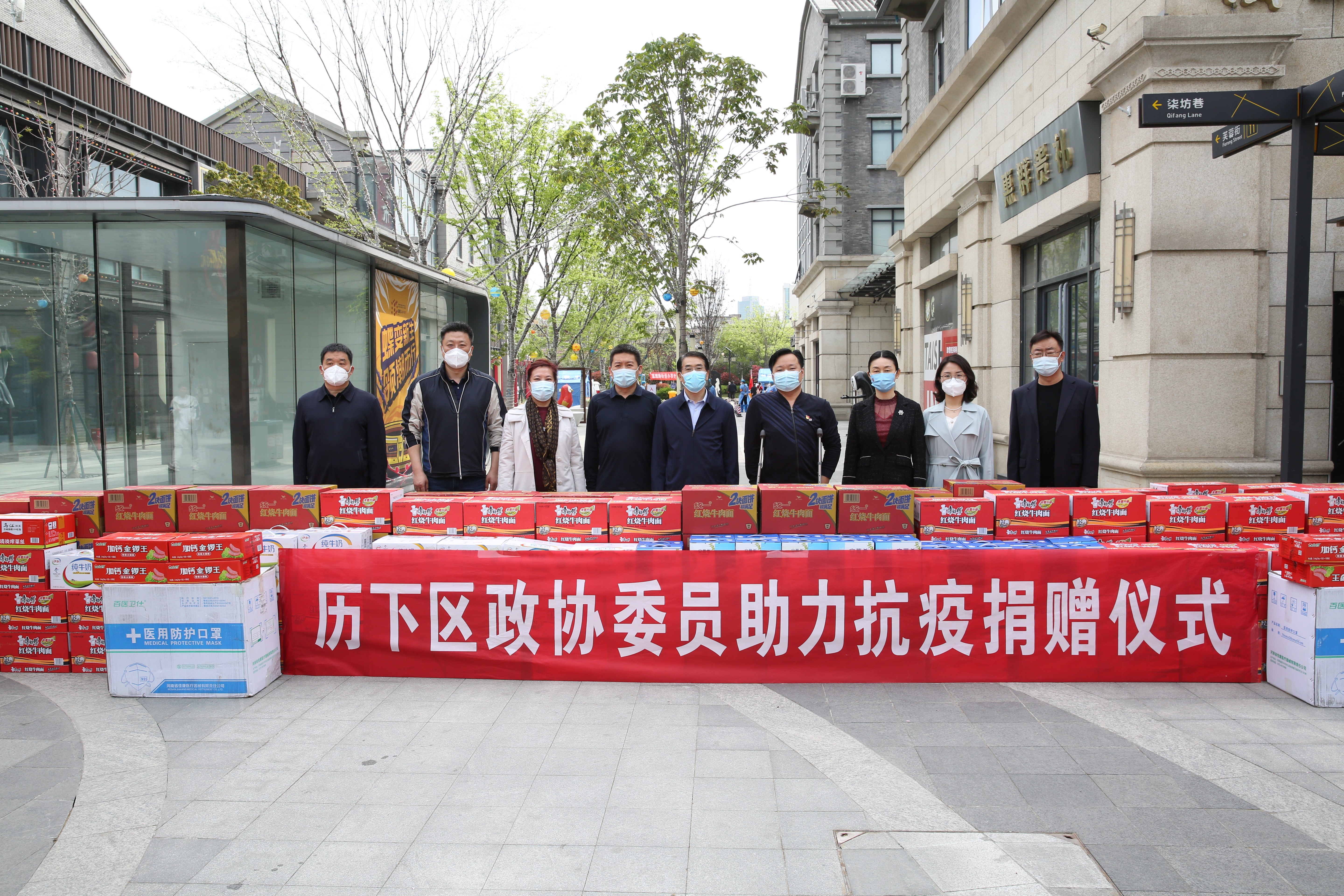 4月9日上午,区政协组织部分政协委员到泉城路街道开展助力疫情防控捐赠活动。区政协主席陈贯鹏,副主席金辉,秘书长封秀焕,区政协常委、山东麦德森集团党支部书记王勇,区政协常委、山东普利园林工程有限公司总经理刘德永参加捐赠活动。