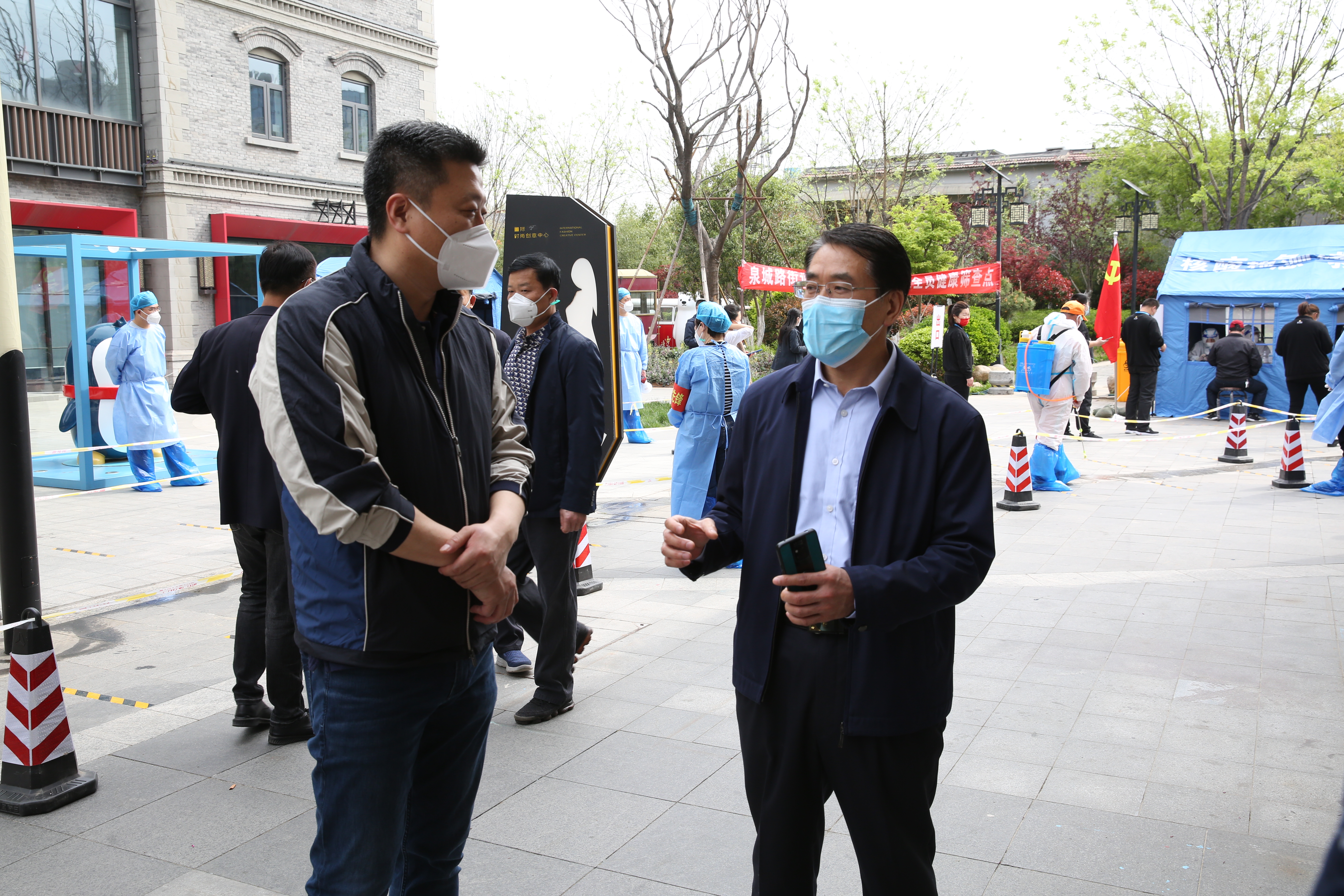 陈贯鹏同志一行实地察看芙蓉街社区疫情防控工作,详细了解核酸检测、应急处置、物资配备等各项措施落实情况,看望慰问坚守在疫情防控一线的工作人员,并为他们送去了口罩、食品等防疫物资。 疫情就是命令,防控就是责任。面对当前复杂严峻的疫情防控形势,区政协认真贯彻落实中央和省市区委关于疫情防控的决策部署,组织带领政协各参加单位、广大政协委员和机关干部积极投身疫情防控工作,坚守岗位、履职尽责、主动作为,深入抗疫一线踊跃参与志愿服务、捐款捐物、宣传引导等活动,围绕疫情防控工作积极建言献策、献计出力,以实际行动筑牢疫情防控坚实防线,形成了众志成城、共克时艰的强大合力,充分彰显了政协人的责任与担当,为打赢疫情防控阻击战贡献政协智慧和力量。 区政协办公室、泉城路街道有关负责同志参加活动。(区政协办公室)